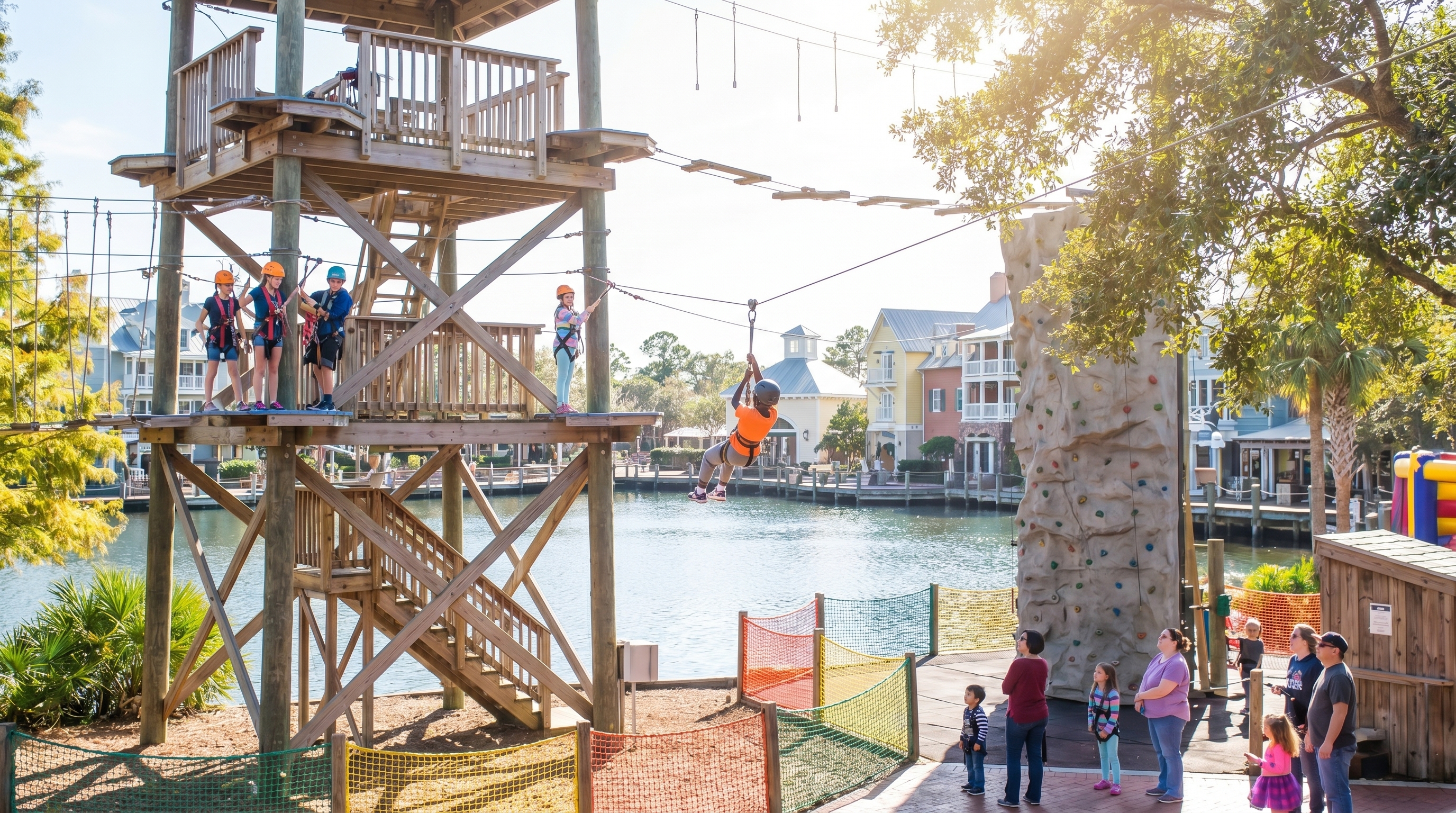 The original zipline and ropes course of NW Florida β soar 300 feet across the lagoon at Sandestin's Baytowne Wharf....